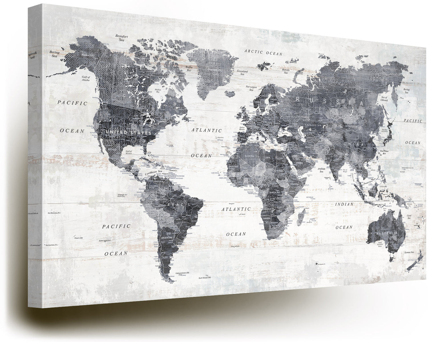 Canvas Wall Art World Map Office Artwork in Black 3 Pcs